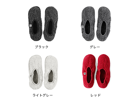 ポーランドのニットファクトリー、コールドブレーカーのルームシューズです。一見化学繊維のフリースに見えますが、実はウール100%。真冬になると零下30度にもなるポーランドで飼育された羊の毛は保湿保温性に優れ、とてもあたたかです。特殊な方法により、ウール独特のチクチクとした肌触りを最小限に抑えるようカットしているので、肌あたりがふんわりとしています。また、履き口がゴムで脱げにくく、底面が柔らかいためしゃがみやすく、家事などの作業にも向いています。カラーバリエーションは、ライトグレー、グレー、ブラック、レッドの4種類です。