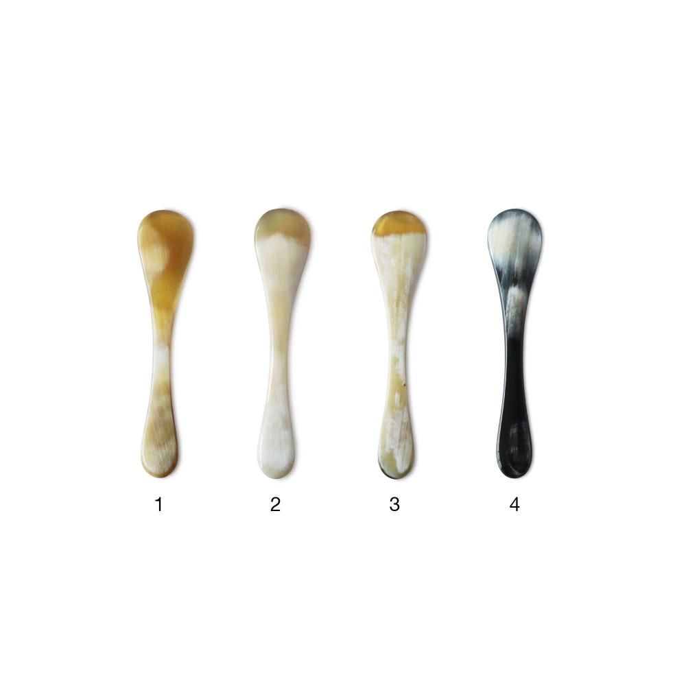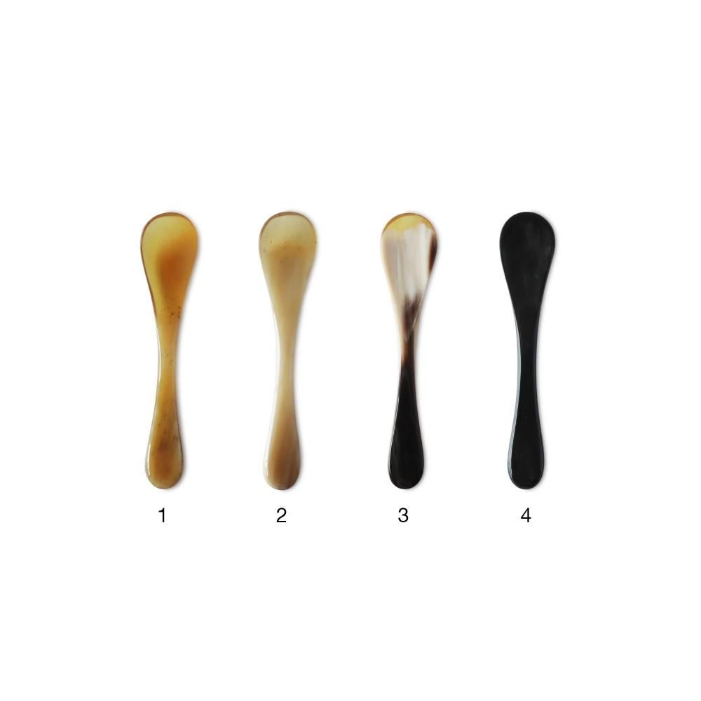 デンマーク北西部の小さな村にある工房、ホルンヴァーレファブリッケンがつくる牛の角でできたソルトスプーンです。1935年に創業して以来、職人たちがひとつひとつ手作業で加工して作っています。丁寧に磨きをかけているので光沢があり、手に馴染みやすくなっています。ソルトスプーンは、長さが 7.5 cm ととても小さく、お塩ひとつまみぐらいの少量をすくいやすいサイズです。
