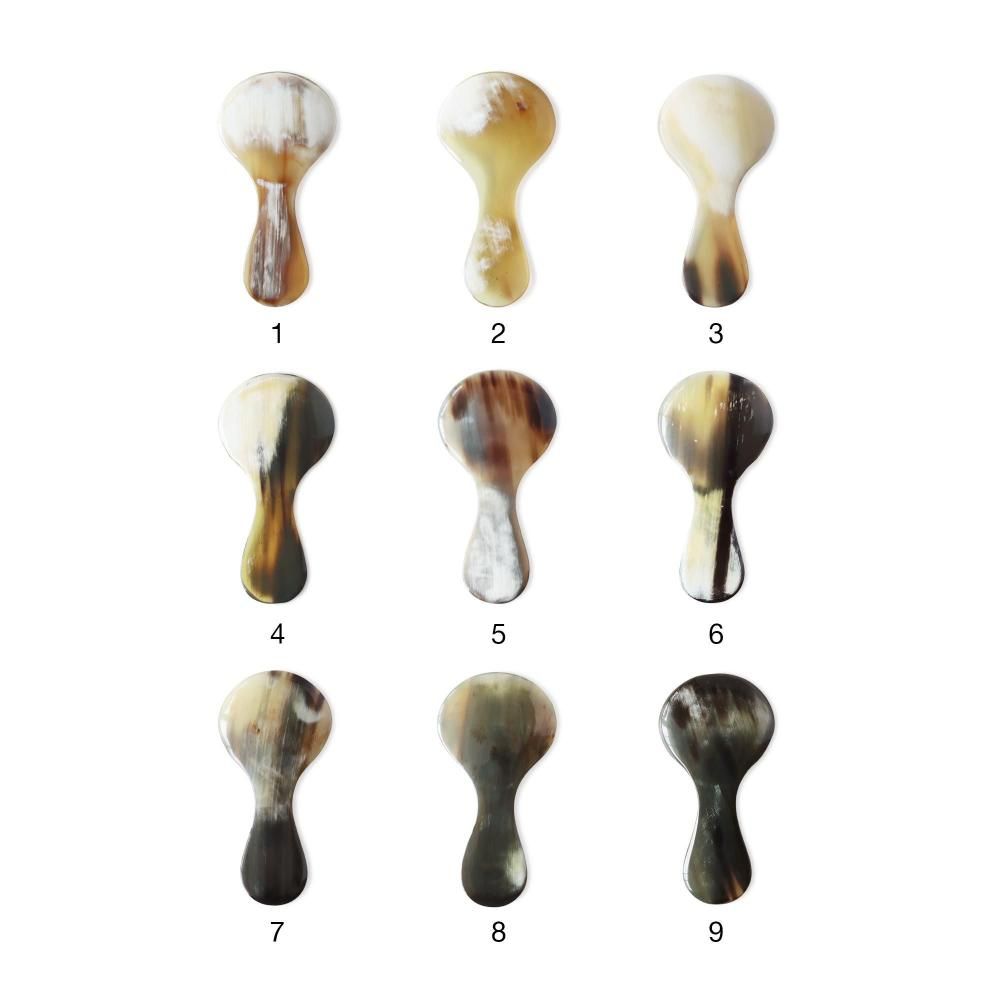デンマーク北西部の小さな村にある工房、ホルンヴァーレファブリッケンがつくる牛の角でできたティーメジャースプーンです。1935年に創業して以来、職人たちがひとつひとつ手作業で加工して作っています。丁寧に磨きをかけているので光沢があり、手に馴染みやすくなっています。ティーメジャースプーンは、茶葉がすくいやすいデザインです。手のひらサイズなので、オリジナルの