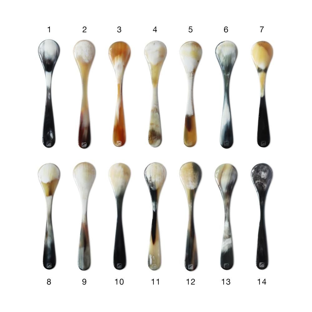 デンマーク北西部の小さな村にある工房、ホルンヴァーレファブリッケンがつくる牛の角でできたエッグスプーンです。1935年に創業して以来、職人たちがひとつひとつ手作業で加工して作っています。丁寧に磨きをかけているので光沢があり、手に馴染みやすく、口当たりの良いスプーンになっています。エッグスプーンは、マーマレードスプーンより小さいサイズです。