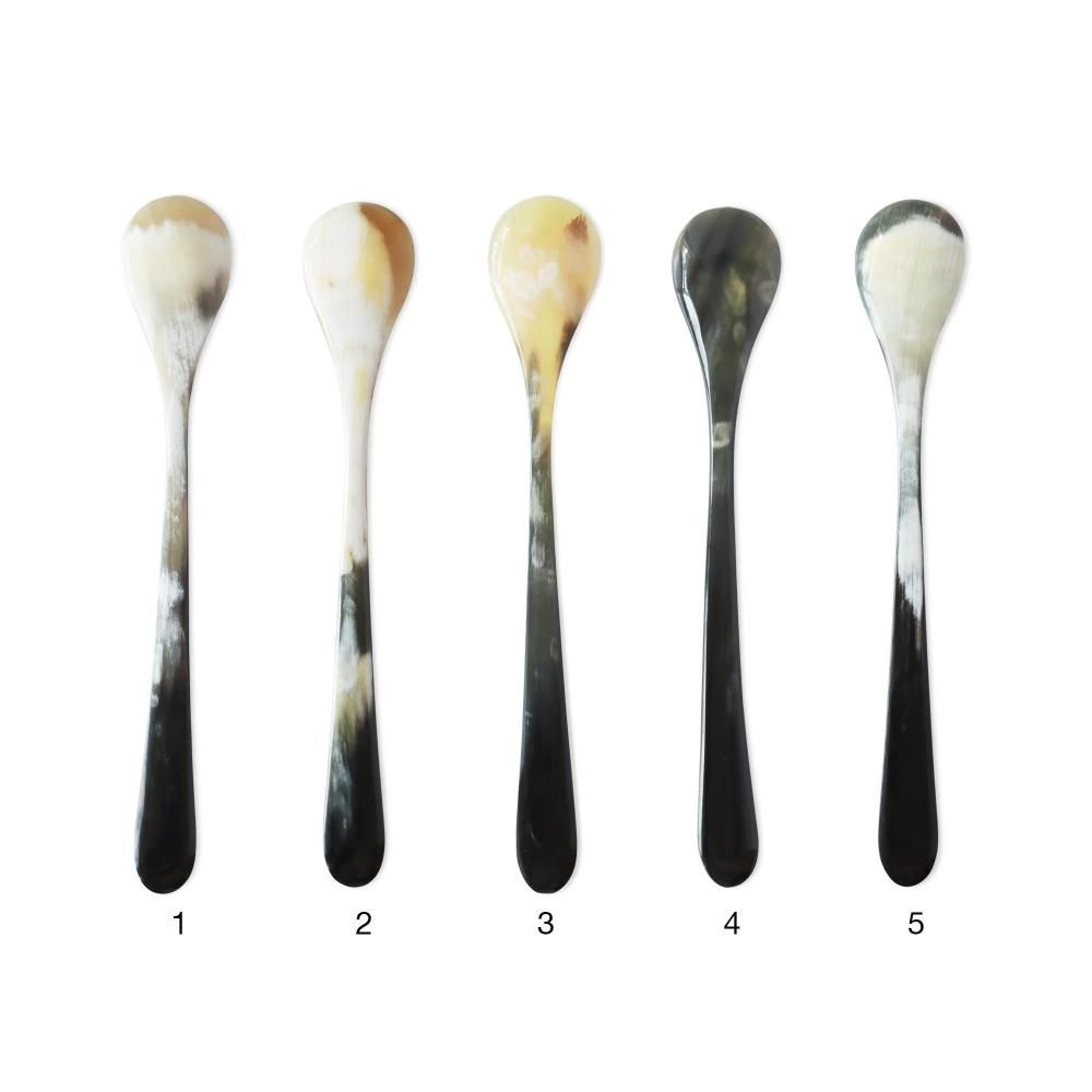 デンマーク北西部の小さな村にある工房、ホルンヴァーレファブリッケンがつくる牛の角でできたマーマレードスプーンです。1935年に創業して以来、職人たちがひとつひとつ手作業で加工して作っています。丁寧に磨きをかけているので光沢があり、手に馴染みやすく、口当たりの良いスプーンになっています。マーマレードスプーンはSとMの2サイズあります。