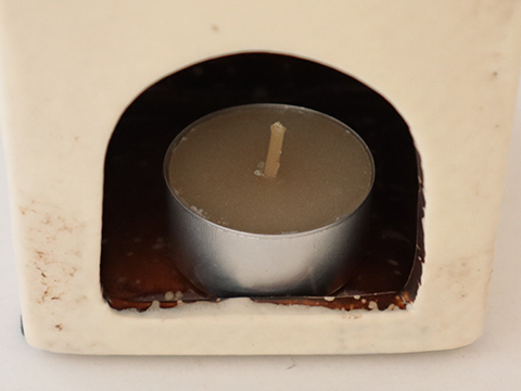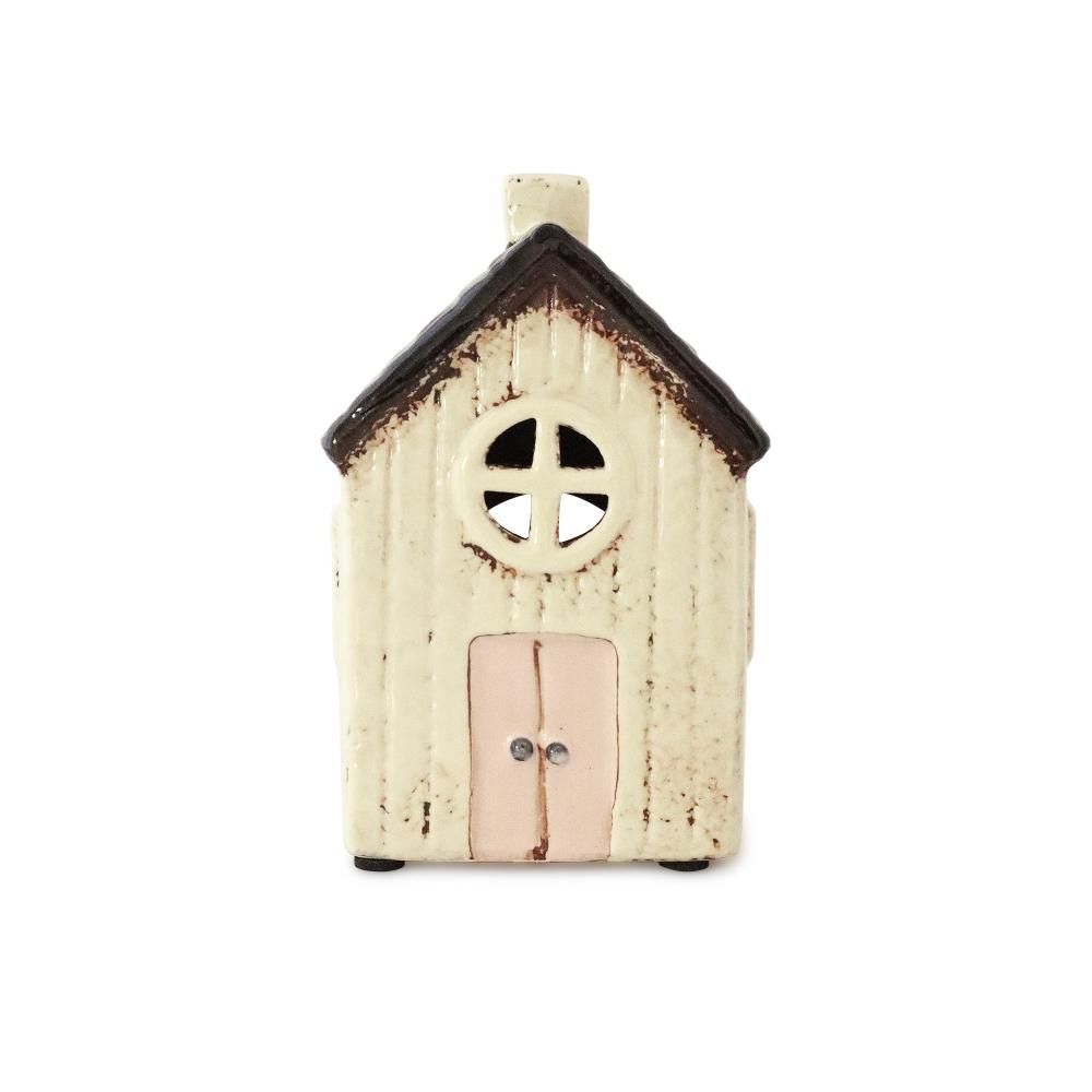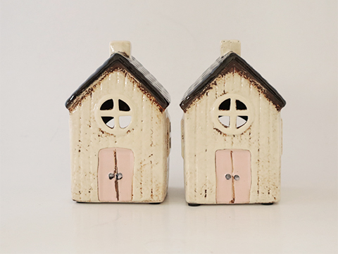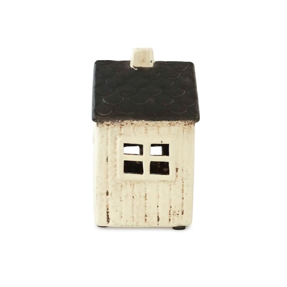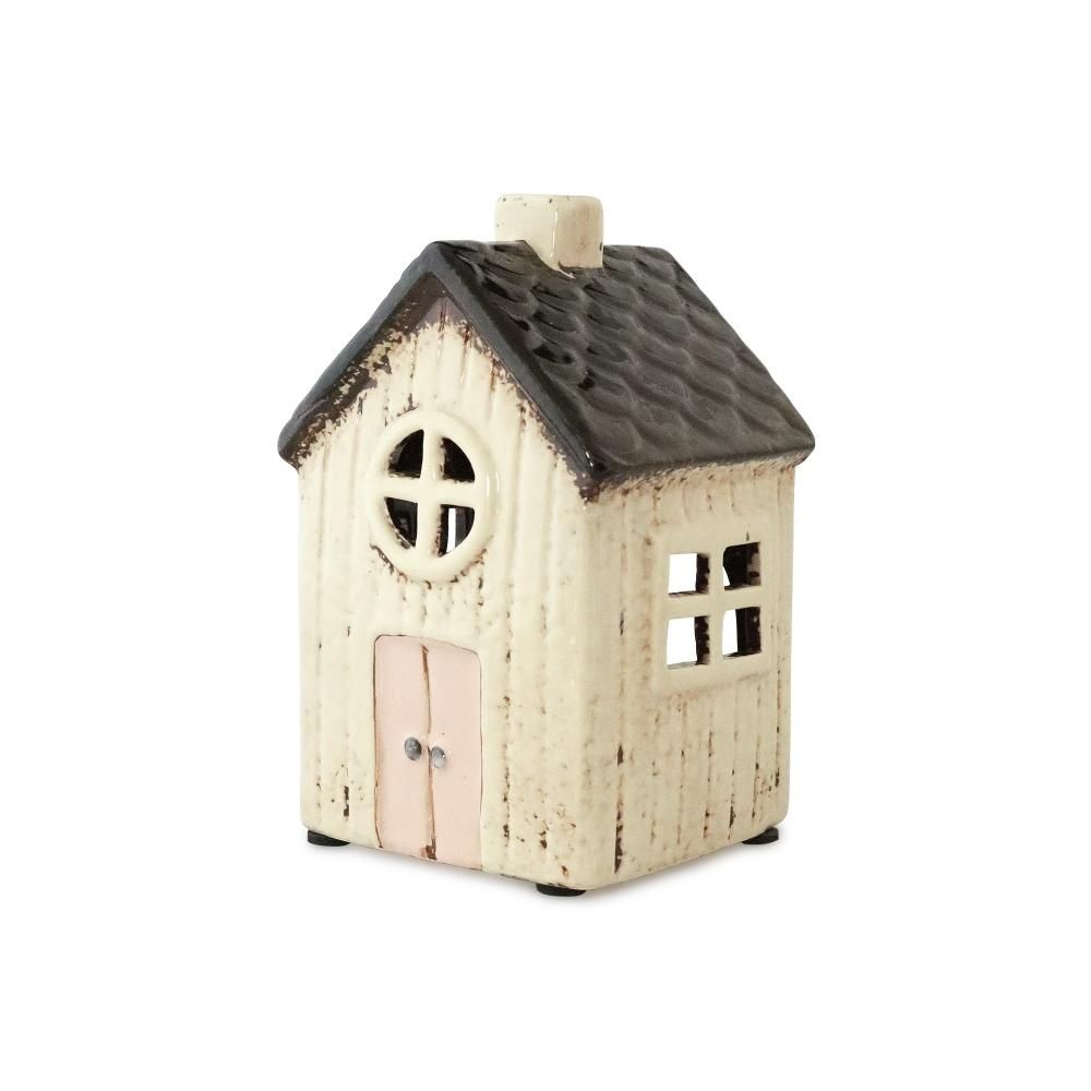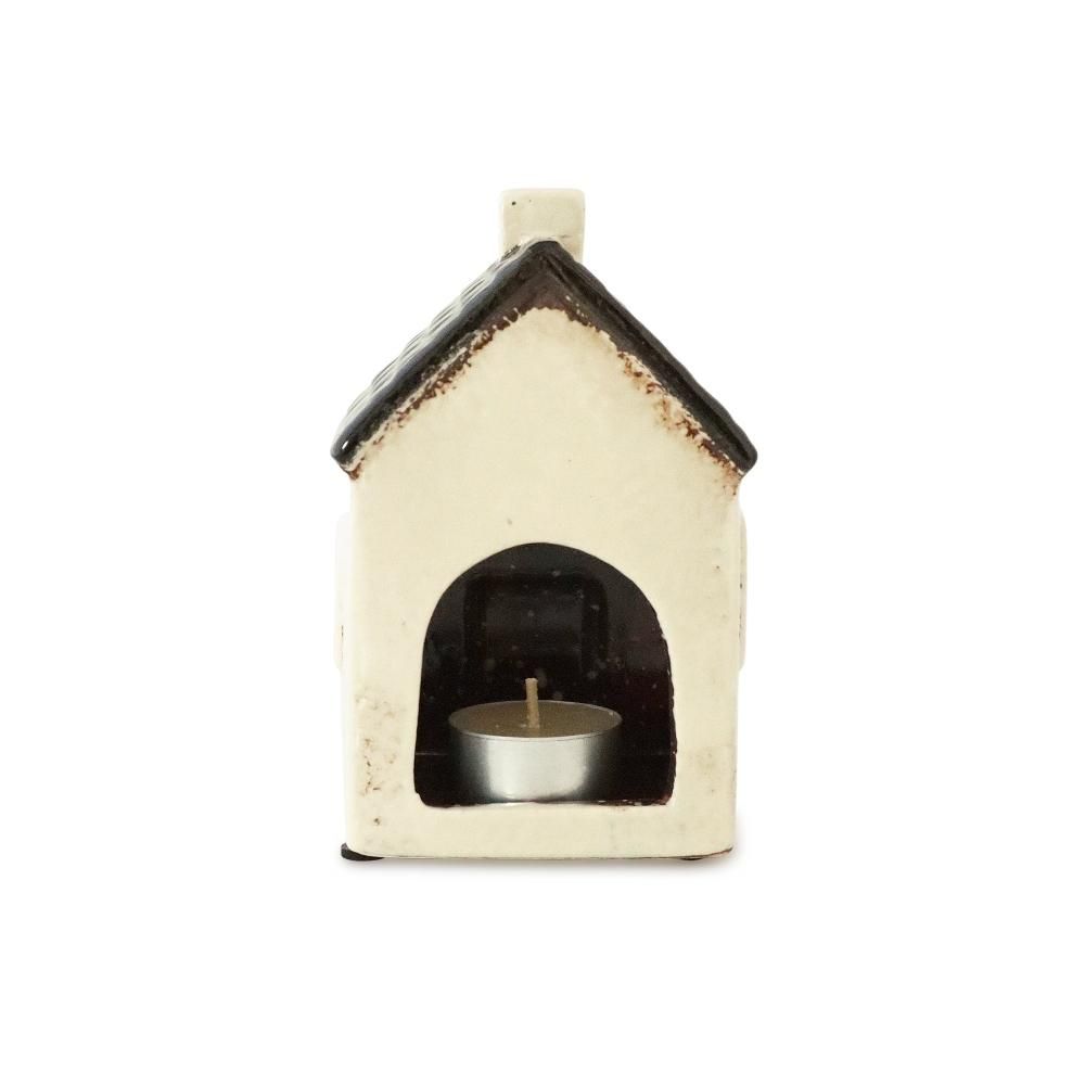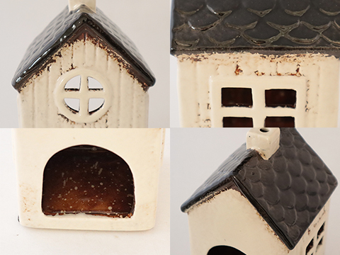 ヨーロッパの家をモチーフにした陶器のキャンドルハウスです。裏側からキャンドルやLEDキャンドルを入れて、キャンドルを点すと窓から灯りがもれてあたたかな印象になります。