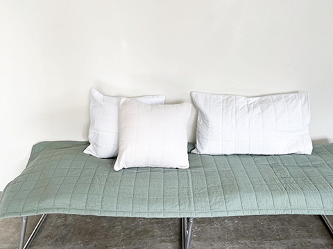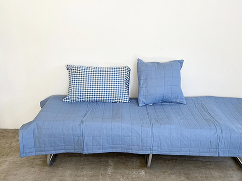 日本ルーツのものづくりにこだわるホームファブリックブランド、YARN HOMEがつくるクッションカバーです。UKIHAシリーズは、福岡県うきは市でつくられている、医療用脱脂綿をガーゼで挟みキルトをかけた生地「pasima(パシーマ)」を使っています。医療にも使われてきたガーゼと脱脂綿の三層構造で、洗うほどにふっくらやわらかく育っていきます。洗濯機で丸洗いができ、晴れた日なら2〜3時間ほどで乾きます。室内干しでも匂いの心配もありません。リビングでもベッドでも、リラックスのひとときのお供に。