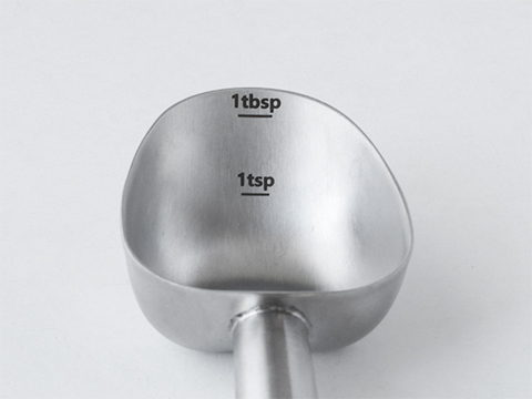 1903年にドイツで創業したヴァイスがつくるステンレス製のキッチンツールです。シンプルで洗練されたドイツらしいデザインと高い耐久性と機能性が魅力で、家庭からプロの現場まで幅広く愛用されています。ステンレス製の計量スプーンは、スプーン部分に「tsp(小さじ:5ml)」「tbsp(大さじ:15ml)」と刻印されており、1本で大さじと小さじの両方を計量できます。底がフラットなので安定しやすく、正確に量ることができます。また、計量スプーンとしてだけでなくティースプーンとしても優秀です。アッサムティーのような細かい茶葉もすくいやすく、ポットに茶葉を入れやすい形状なので、ティースプーンとして使うのもおすすめです。食洗機にも対応しています。