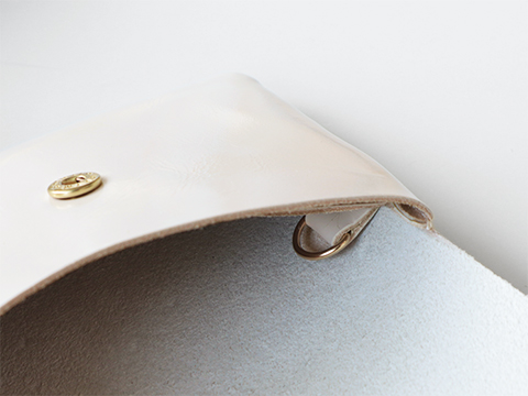 最小限のカードや小銭を持ち歩けるコンパクトなお財布です。お札と小銭を分けて入れられる仕切りがあり、キーリングもついているので鍵も一緒にまとめられます。メインのお財布としてはもちろん、旅行やちょっとした外出用の2つ目のお財布としてもおすすめです。革はサンク定番の長財布や二つ折り財布と同じイタリアンレザーと新しくガラスレザーを作りました。ガラスレザーは、日本の牛皮を日本で丁寧に加工した革です。表面をなめらかに研磨し、樹脂や塗料で仕上げ、上品な光沢と高い耐水性があります。カラーバリエーションは、イタリアンレザーはブラック、キャメルの2種類、ガラスレザーは、パステルブルー、パステルピンク、ベージュの3種類です。
